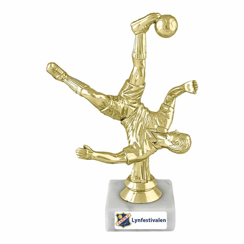 Fotball statuett herre på marmorfot. Populær og prisgunstig deltakerpremie. Prisen er inkl. eget vinylmotiv med logo og lik tekst . Min. antall 100 stk.