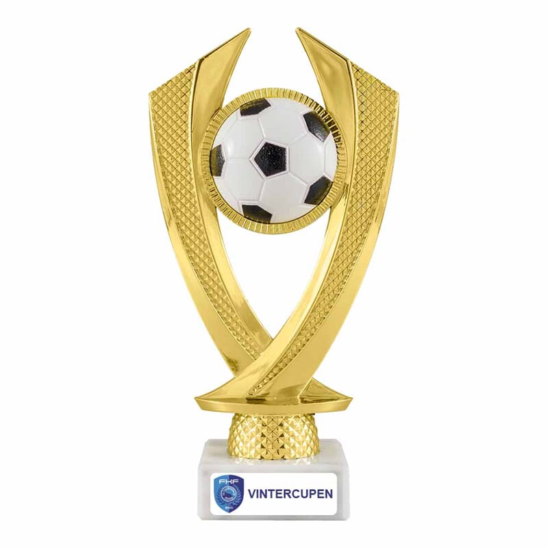 Fotball statuett. Populær og prisgunstig deltakerpremie. Prisen er inkl. eget vinylmotiv med logo og lik tekst . Min. antall 100 stk.