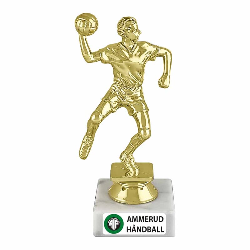 Håndball statuett herre på marmorfot. Populær og prisgunstig deltakerpremie. Prisen er inkl. eget vinylmotiv med logo og lik tekst . Min. antall 100 stk.