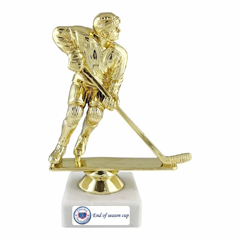 Flott ishockey statuett. Populær og prisgunstig deltakerpremie. Prisen er inkl. eget vinyl motiv med logo og lik tekst.